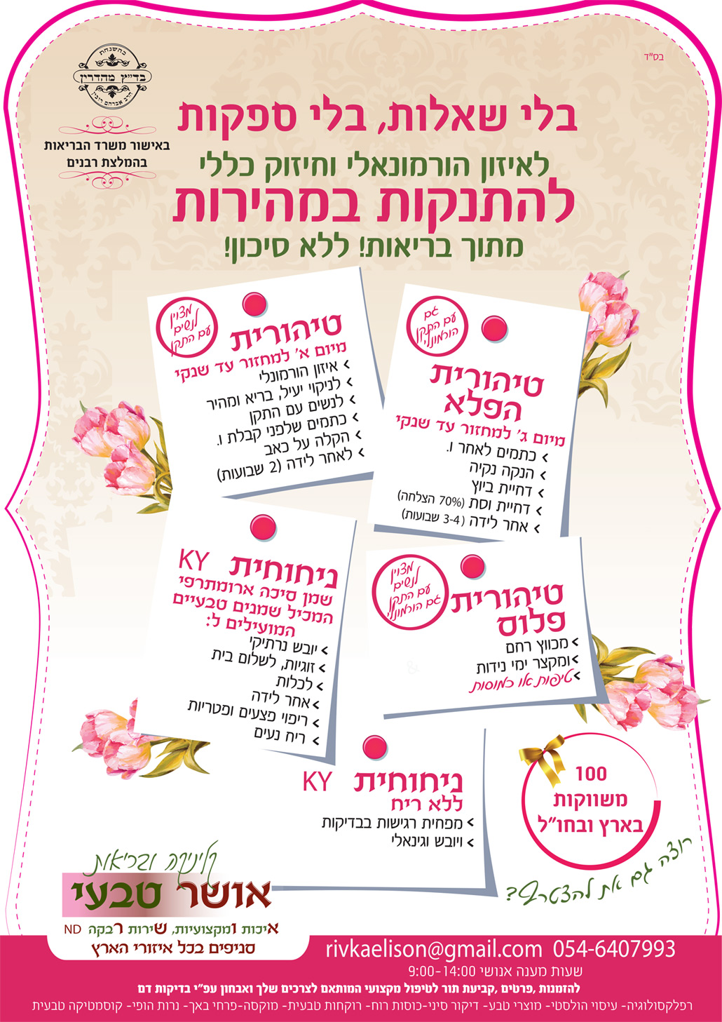 לכן בסייעתא דשמיא פיתחתי את פורמולה מהפכנית - הטיהורית שעוזרת לבעיות הבאות: